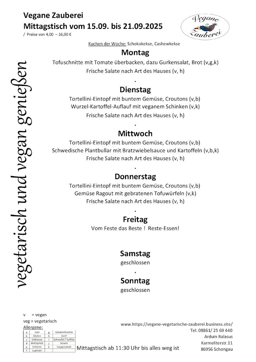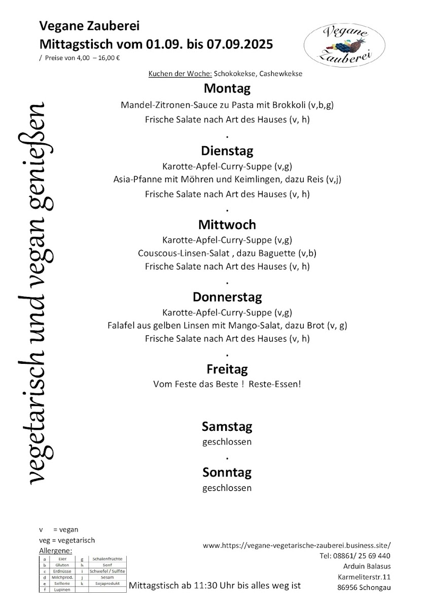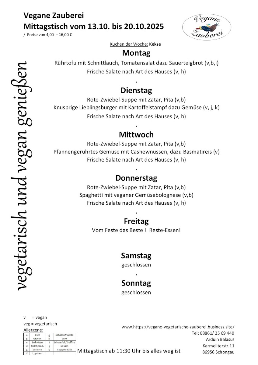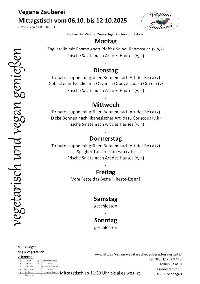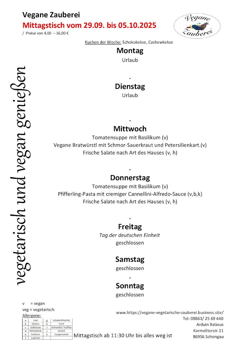 If you're in Schongau, make sure to visit Vegane Zauberei, a charming vegan restaurant located at Karmeliterstraße 11. Known for its cozy ambiance and warm hospitality, this spot is perfect for those seeking comfort food that delights the senses. Diners rave about the delicious dishes, including comforting Kohlrabischnitzel, vibrant mixed salads, and savory tomato soup, all crafted with fresh ingredients and a dash of love. Guests appreciate the friendly service and the inviting garden seating, providing a serene escape from the hustle and bustle.